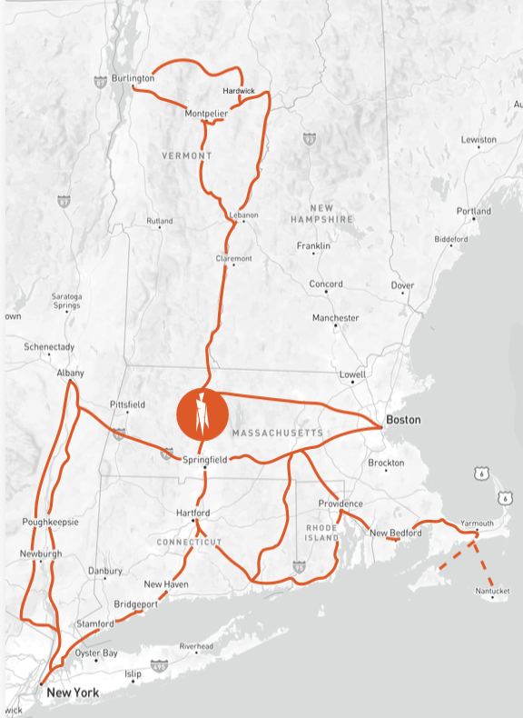 These maps show the areas where Myers trucks currently travel. We pick up and deliver directly along the marked routes. We are always working to expand the areas we serve within the Northeast. We also have several partners who carry our food beyond our service area, or who can bring us food from outside our current radius. Please reach out if you are interested in working with us, even if you fall outside the areas marked here.